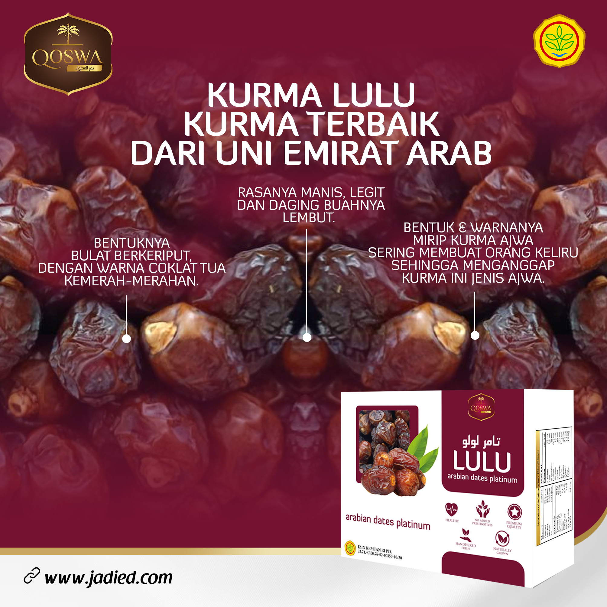 Kurma Lulu adalah salah satu jenis kurma unggulan yang dikenal dengan bentuknya yang kecil, bulat, dan bertekstur kenyal. Memiliki rasa manis yang khas dan kaya akan nutrisi, kurma ini menjadi pilihan favorit bagi banyak orang untuk dikonsumsi sehari-hari.