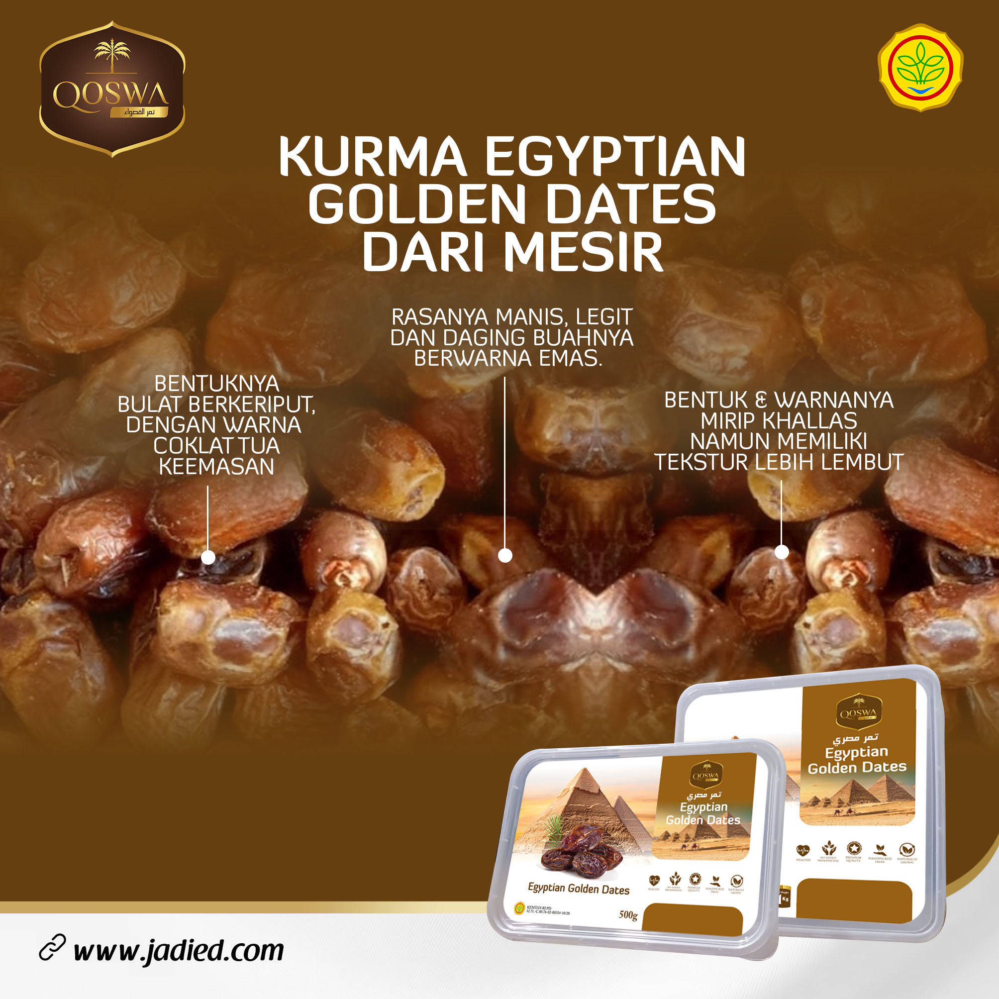 Kurma Qoswa Egyptian Golden Dates adalah kurma premium asal Mesir yang dikenal dengan warna keemasan dan teksturnya yang lembut. Kurma ini memiliki cita rasa manis alami dengan sedikit kelembutan di setiap gigitannya, menjadikannya pilihan istimewa bagi pecinta kurma.