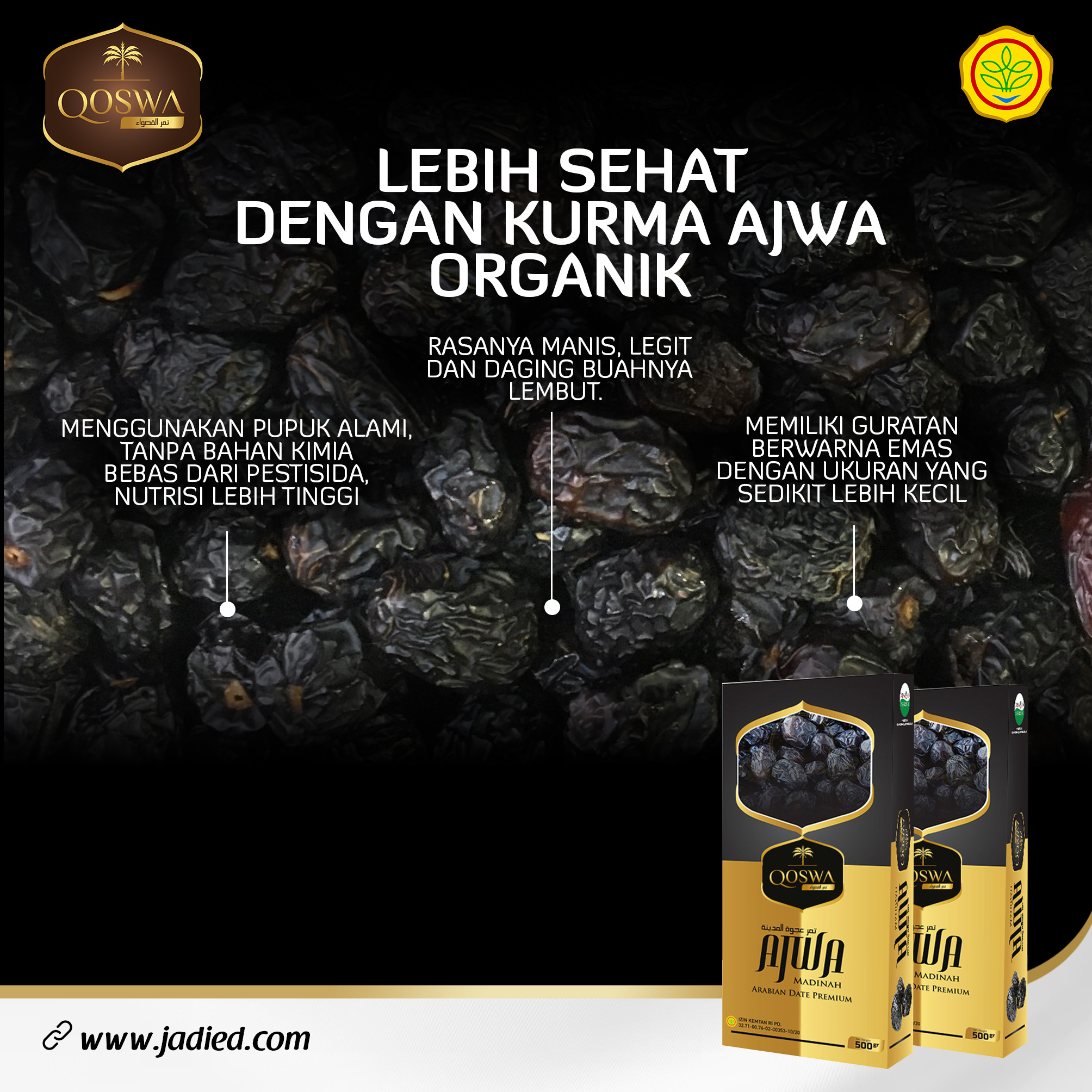 Kurma Ajwa Organik, sering disebut sebagai "Kurma Nabi," merupakan kurma istimewa dengan rasa manis yang lembut dan tekstur yang sedikit kenyal. Ditumbuhkan secara organik tanpa penggunaan bahan kimia, kurma ini menjadi pilihan terbaik bagi Anda yang mengutamakan kesehatan dan keaslian.