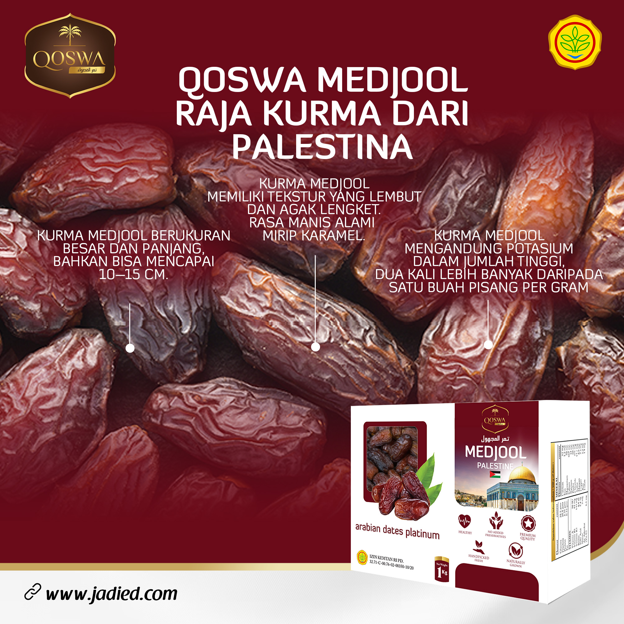 Berasal dari Palestina, Kurma medjool memiliki ukuran yang besar dan daging buah yang tebal, menjadikan medjoul dikenal dengan julukan “Raja Kurma”.